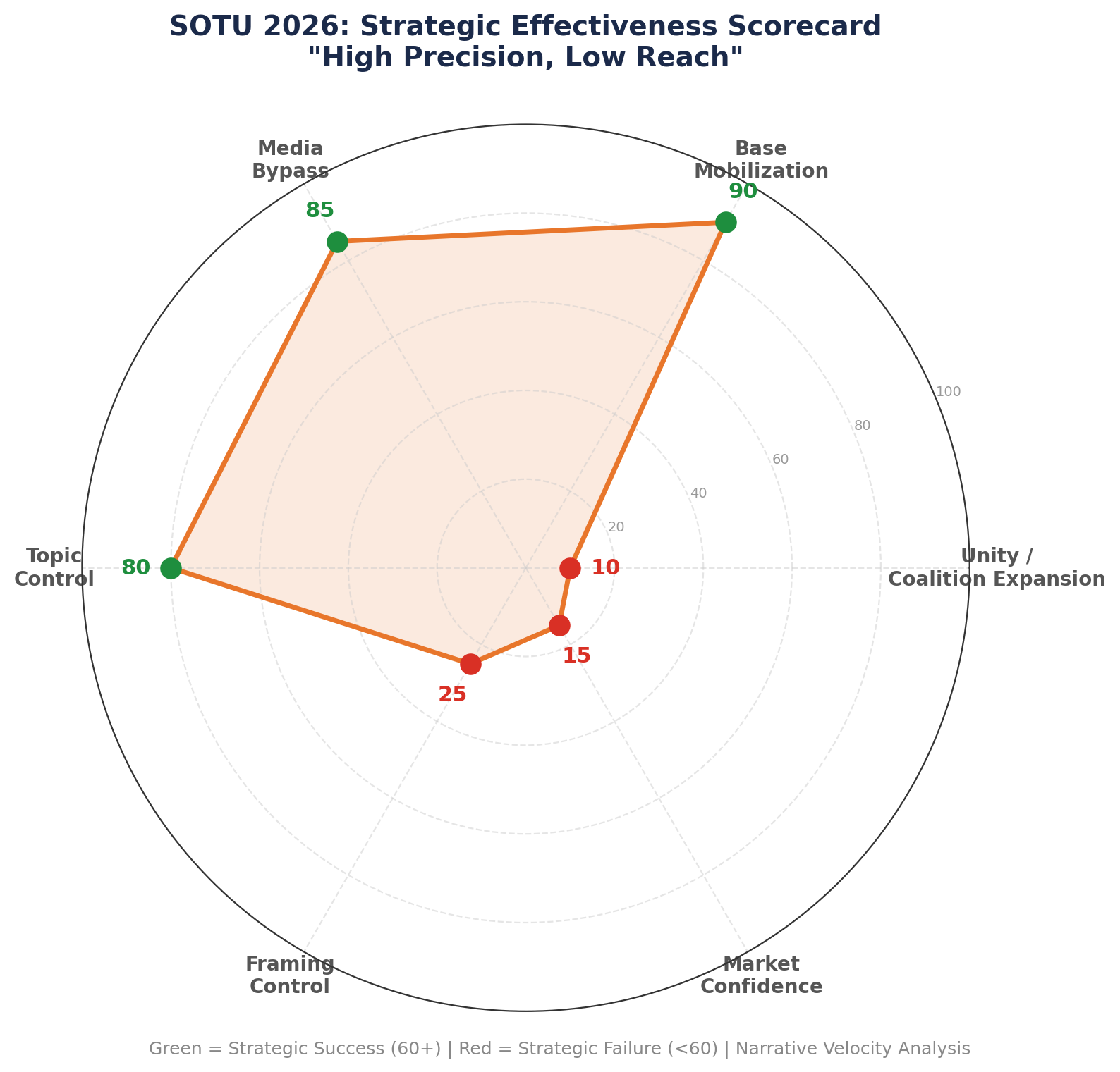 The answer, based on 36 hours of post-SOTU coverage tracking, is yes. Both. Simultaneously. The electorate fragments, so the media caters to the fragments. The media caters to the fragments, so the electorate fragments further. Each cycle widens the gap. And the 2026 State of the Union is the clearest evidence we've had that this feedback loop is no longer a theory. It's the operating reality for anyone who manages communications, defends a reputation, or tries to make sense of public narratives for a living.